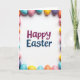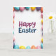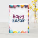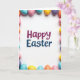 This greeting card features a tall, white background with “Happy Easter” centered in the middle, where “Happy” appears in rich magenta and “Easter” in calm teal, both with a slight raised, shadowed look. Around the message, a continuous frame of smooth egg shapes wraps the edges like a gentle embrace, giving the layout a friendly, close-knit feel 🐰. The eggs are evenly spaced and softly lit, showing glossy surfaces and tidy curves that keep the design neat and inviting. Colors alternate in a spring mix of light blues, soft pinks, sunny yellows, warm oranges, and quiet purples, creating a sweet rhythm as your eyes travel around the border 🌷. The centered lettering stays easy to read because the white space leaves plenty of breathing room between the text and the edge decorations. With the bright frame circling the words, the overall look suggests togetherness, like a note meant to be shared between close friends or a couple exchanging a tender holiday greeting. The border forms an unbroken ring of pastel eggs along all four sides of the card.