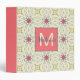 Pastel Elegant Retro Geometric Pattern Monogrammed 3 Ring Binder