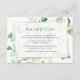 Forest eucalyptus watercolor wedding reception card with gold geometric frame customizable to your event specifics.