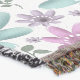 A quality printed throw has its advantages. This is a much finer weave throw than its loopier cousins, and though lighter, it is worth the investment for custom room accessorizing. The back is much prettier than the typical brown, and the fringe on the long sides very vivid, the selvage nicely done. Before photographing, I washed the throw in cold water, delicate, with a thicker woven throw the same size. On tumble dry low, this throw was dry in half the time as the other. This is a very practical quality if you use throws for furniture covers or to wrap up in frequently. The sleekness of the fabric makes it a great layer for accenting or protecting without the feeling of sitting on too much stuff. Perfect for napping or when you feel a light chill coming on. The color printing is beautiful and on this fabric, matched the design and color of my Photoshop image. This is an advantage for blending room fabrics and colors. The fringe on the short sides prints the colors from the design image and therefore varies from the side fringe. I streaked a white fractal line through the plaid pattern to give the illusion of weaving. This printed as crisp as an illusory thread, and put some white in the short side fringe, showing another advantage of print vs loomed- for artistic purposes, line lines, detail, and color integrity can be planned and preserved. My loomed throws have color limitations and more of a needlepoint texture. Print throws reproduce an exact image. The throw felt a little stiff straight out of the package, but this went away in the first delicate wash. Of course I searched the wash water for ink or bleeding and there was none.
