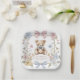 Make your baby shower truly memorable with these beautifully designed paper plates. The centerpiece is a lovable teddy bear, framed by an exquisite arrangement of pastel flowers and leaves, accented with dainty bows. This design radiates warmth and sweetness, perfect for celebrating a joyous baby shower event. Use these plates to serve your guests a delightful spread and let the adorable teddy bear and soft floral motifs add a touch of magic to your celebration.