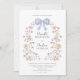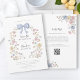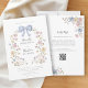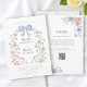 Elegant watercolor floral arch framing a delicate blue bow adorns this wedding invitation. The soft pastel blooms in pink, yellow, and blue evoke a romantic and whimsical garden feel, perfect for a spring or summer wedding. The reverse side features a convenient QR code that seamlessly directs guests to your wedding website. This feature allows for easy RSVPs, sharing accommodation details, directions, and all other important wedding information, streamlining the guest experience. Make it easy for your guests to stay informed and celebrate with you.