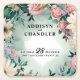 Pastel Flower Elegance: Sage Green Floral Wedding Square Paper Coaster