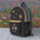 A black backpack with additional yellow and blue colors and pastel flowers to the tunes of Marguerite and a customizable text: perfect for a for romantic girlfriend!