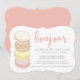 Oh la la! These super-feminine pastel invitation cards are perfect for a French or Paris-themed sweet sixteen birthday party! Uniquely shaped cards feature a stack of delectable macaron cookies in pastel hues of pink, yellow, ivory and tan, with "Bonjour" across the top in peachy pink handwritten-style script. Card reverses to solid blush pink.