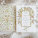 The reverse side is fully illustrated with an intricate floral pattern reminiscent of palace wallpapers or antique textiles. Symmetrical and softly flowing, it uses vintage French motifs and natural floral elements to create a timeless, refined aesthetic. Ideal for garden weddings, spring or summer ceremonies, and couples drawn to historical charm and artistic detail.