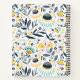 A modern pattern of geometric flowers is pretty and chic in navy blue, pale pink, soft blue, sunny yellow and sherbet orange on this personalized notebook with custom spiral colors, making it great for the style minded lady headed to work or school.