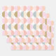 Cute modern geometric pattern of half circles in pastel shades of pink, lavender, cream, gray, and peach.