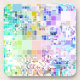 Multisized squares in a geometric pattern. Multicolored in pale pastel shades. Funky retro and fun.