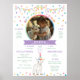 Celebrate your baby’s big milestone with this charming first birthday poster, featuring a watercolor baby goat in a rainbow party hat, festive pastel bunting, and colorful confetti. Personalize it with your child’s photo, name, birth stats, favorite things, and more. This adorable design is perfect for petting zoo or farm-themed parties and makes a sweet keepsake or photo prop for capturing your little one's first year.