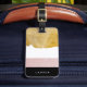 Get your personalized luggage tag for an elegant look with a combination of gold texture, rose gold glitter and white with various colors as a bottom monogram holder. Monogram is in sans serif font same as personal information on the back side.