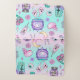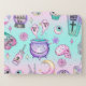Fun halloween pattern design with a touch of pastels, crystal balls, ghosts, cauldrons, tarot cards and more.