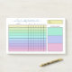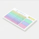 Weekly habit tracker post-its with charts filled in with pastel colors ranging from yellow to green to purple to pink. Add your name in a blue script. The habit tracker notepad features a handy chart where you can check off each day of the week with up to ten habits. Add the time period by hand. And jot down three weekly goals too! All categories are customizable in case you want to change the wording or even the purpose of the planner.