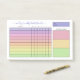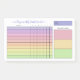 Weekly habit tracker post-its with charts filled in with pastel colors ranging from purple to pink to yellow to green. Add your name in a purple script. The habit tracker notepad features a handy chart where you can check off each day of the week with up to ten habits. Add the time period by hand. And jot down three weekly goals too! All categories are customizable in case you want to change the wording or even the purpose of the planner.