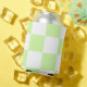 Pastel Green Checkerboard Retro Modern Checks Can Cooler