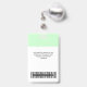Easily personalize this Black and White Custom Employee Name Badge with Photo, Scan Bar Code and business logo. A simple business design in fresh pastel green and white standard colors fully customizable in front and back sizes, sans-serif basic and modern fonts and a professional and clear look. Avaiable with lanyard, metal clip or with retractable. No minimum order.