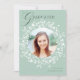 An elegant graduation announcement card featuring a wreath of white wildflower silhouettes, with a photo and a message on the back.