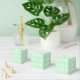 Pastel green with white fencing pattern on favor boxes