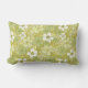 This rectangular throw pillow has flowers and leaves in shades of white, light green, and pale yellow.