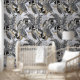 Transform your space with the Pastel Grey & Gold Tropical Palm Leaves over titan white background Wallpaper. This elegant, minimalist, and stylish design embodies an exotic vibe. Featuring exotic nature elements such as botanical garden branches and spring blossoms, this retro vintage dark floral wallpaper highlights palm leaves and a tropical exotic pattern. The combination of pastel grey, gold, white, and titan white showcases monstera leaves and summer foliage, bringing a chic beach coastal ambiance to any room.