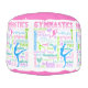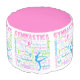 Gymnastics typography pouf with beautiful, bright colors! Gymnastics terms and phrases such as, "stick it, balance beam, salto, tumbling pass", and more fill this fun pouf making it the perfect item for your room decor!