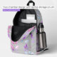 This customizable backpack features a botanical pattern, showcasing stylized hand-painted watercolor leaves arranged in vertical formations. The soft grey background provides a neutral base, allowing the vibrant pink and muted lavender leaves to stand out. The elongated, teardrop-shaped leaves create an organic feel, while the consistent repetition of the pattern adds visual interest. What makes this backpack unique is its customizable feature. The name is elegantly printed in cursive font on the upper part of the bag, allowing customers to personalize it with their own text. Whether you’re strolling through the city or embarking on an adventure, this backpack combines style and functionality!