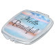 This product is beautiful and just as described. It came in a little box inside a padded envelope, and I expected a smashed mirror, but it's perfect! Thank you! The printing is flawless, and the moon and stars image looks great!