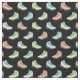 This patterned fabric is perfect for crafting projects with an outdoorsy theme. Illustrations of hiking boots in pretty pastel colors are set against a black background.