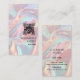 These elegant business cards feature a colorful holographic neon, trendy colorful neon stroke on a rainbow. Your name appears in trendy handwritten script typography. There is also room to include your social media information on the back.