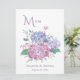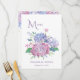Pastel Hydrangeas Wedding Menu designed with bright hydrangeas floral bouquet on a white background. The front text includes: Menu, The Bride and Groom's Names and Wedding Date. The reverse text includes: Menu, and Appetizer, Entre and Dessert Selections. To personalize, simply insert your details into our easy template, replacing the sample.