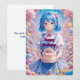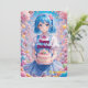 Bring extra sweetness to any celebration with this adorable anime-style birthday card. Featuring a cheerful girl with short blue hair and round glasses, she holds a beautifully decorated cake topped with colorful frosting flowers and soft pastel details.