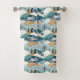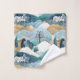 A modern, abstract landscape pattern with hills in white, aqua, and gold interspersed with green trees creates a beautiful and stylish bath towel set that you will love.