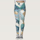 A modern, abstract landscape pattern with hills in white, aqua, and gold interspersed with green trees creates a beautiful and stylish pair of leggings that you will love.