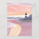 Pastel Lighthouse | Coastal Beach Shore Watercolor Postcard