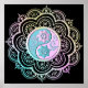 An elaborate mandala featuring floral yin yang motifs with a subtle gradient color scheme. The floral patterns are intricately detailed, creating a visually pleasing symmetrical design.