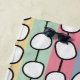This beach towel has a mid-century modern design of white “deformed” circles connected with black lines on a field of pale green, pale pink, pale blue, and pale yellow strips. If you like the design but prefer different colors, message me.