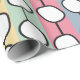 This wrapping paper has a mid-century modern design of white “deformed” circles connected with black lines on a field of pale green, pale pink, pale blue, and pale yellow strips. If you like the design but prefer different colors, message me.