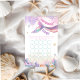 Make gift-opening even more exciting with this enchanting mermaid bingo game. Designed with a shimmering rainbow tail, soft blush and lavender watercolor swirls, and delicate gold coastal accents, it adds playful energy to your under-the-sea celebration while keeping the look elegant and cohesive.
