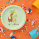 Make your dinosaur party roar with this playful paper plate featuring bold “Let’s Roar” text on a pastel mint green background. Fun, festive, and full of dino energy, this plate is perfect for birthdays, celebrations, or themed events. Coordinates beautifully with matching dinosaur party supplies and is ideal for toddlers, kids, and dino-loving guests!