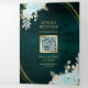Pastel Mint Roses All in One QR Code Teal Wedding Tri-Fold Invitation