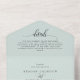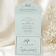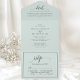 Simplify your wedding stationery with this elegant all-in-one invitation in a soothing pastel mint green. The design features a modern, flowing "details" and "rsvp" script paired with a clean serif font for your ceremony information. This convenient format includes space for your formal invitation, guest details, and a perforated RSVP postcard, all within a single beautifully cohesive piece. Its sophisticated and timeless aesthetic makes it a perfect choice for any wedding style, from romantic garden ceremonies to modern indoor receptions. This high-quality invitation provides a polished and professional way to share all your essential wedding day information in one stylish package.