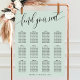 Welcome your guests with this elegant pastel mint green wedding seating chart. Featuring a minimalist design with modern script that says find your seat, this seating chart is perfect for a sophisticated and stylish wedding. The soft color and clean layout provide a refined and organized look, ensuring your guests can easily find their seats. Customize with your names and table arrangements to create a unique and cohesive addition to your wedding decor. This seating chart accommodates up to 12 tables, making it ideal for a well-planned and elegant celebration.