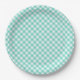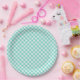 Pastel mint turquoise gingham pattern paper plates. They make great plates for a birthday, baby shower or picnic.