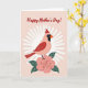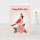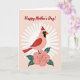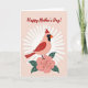 At the center of the card is a sweet, stylized bird perched low in the layout on a softly layered pink rose, its blush body and warm reddish-orange wings leaning in as if guarding the bloom with gentle affection ❤️. A bright orange beak and a small, shining eye stand out against a darker face marking, giving the bird a friendly, attentive look. The rose opens in neat, rounded petals, with two deep green leaves spreading outward like supportive arms beneath it. Behind the bird and flower, a large white burst of long, petal-like shapes forms a glowing halo that frames the main scene with a calm, celebratory feel. The background stays a pale blush pink, keeping everything soft and cozy, like a quiet morning moment shared with someone you love 🌼. Near the top, the words “Happy Mother’s Day!” sit centered in a flowing reddish-brown lettering, clearly separated from the illustration below. The overall artwork uses smooth, simple shapes with gentle shading to suggest depth while staying airy and light. The white halo petals radiate outward in an even ring behind the rose and bird.