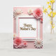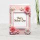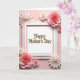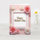 This card features a soft pastel arrangement built around a white square frame with a thin inner rim in gentle pink. Centered inside the frame, the words “Happy Mother’s Day” sit on a bright white panel in raised gold lettering that catches the light with a tender glow ❤️. Surrounding the frame are layered paper flowers in blush pink and creamy off-white, their curled petals leaning inward as if gathered close in a caring embrace. A large rose cluster rests near the top right while another anchors the bottom left, creating a balanced, affectionate flow across the design. Pleated, star-like paper rosettes appear at the top left and bottom right, adding crisp texture beside the softer petals. The background is an even, light pink field that keeps everything calm and sweet, like a quiet moment shared with someone dear 🌼. Soft, diffused lighting adds gentle shadows under the petals, the folded rosettes, and the raised gold text within the white square frame.