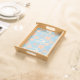 This is a well made, sturdy wooden tray with a flawless black finish and lovely map on the tray surface. It is both vintage & modern at the same time. Looks exactly like the photo; does not disappoint. So nice to find something of quality individually made and not the mass-produced 'shabby chic' merchandise seen in stores. I am so pleased to be able to give this to my college-age niece for her birthday. This can be used as a tray to hold jewelry or toiletries, or hung on the wall as art. The map surface is sealed (it is slightly shiny) so would be moisture resistant. It is well worth the asking price but I was able to apply a sale code as well. Very happy with my purchase. Map is crisp & clear and sealed with a water-resitant finish.