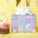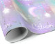 A pretty pastel color night sky with glowing stars and a glowing pink moon. Sprinkled with silver stars and cosmic glitter. Very cute and colorful design .Personalize on back if you wish. In colors of purple, pink, yellow and teal.