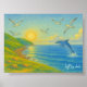 Pastel Ocean Sunset Landscape Painting Dolphin Poster