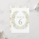 Elegantly timeless, these bohemian wedding table numbers showcase a delicate watercolor wreath of paster orange floral wreath, complemented by a simple and minimalist green text for a touch of sophistication.