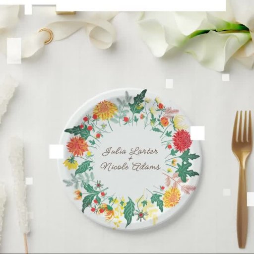 Pastel Orange Yellow Spring Dahlia Flowers Wedding Label
